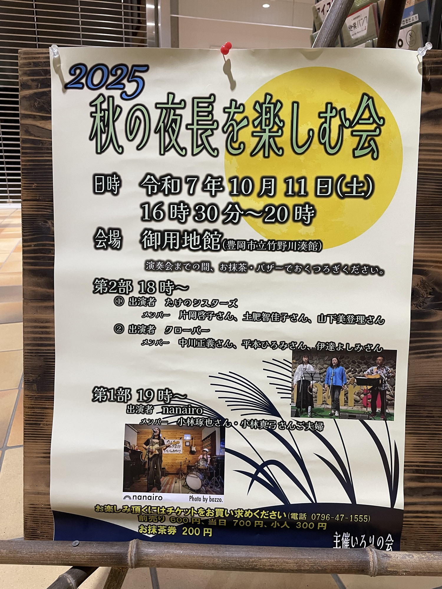 | Charge | 前売 ¥600 当日 ¥700 子供 ¥300 お抹茶券 ¥200 |
