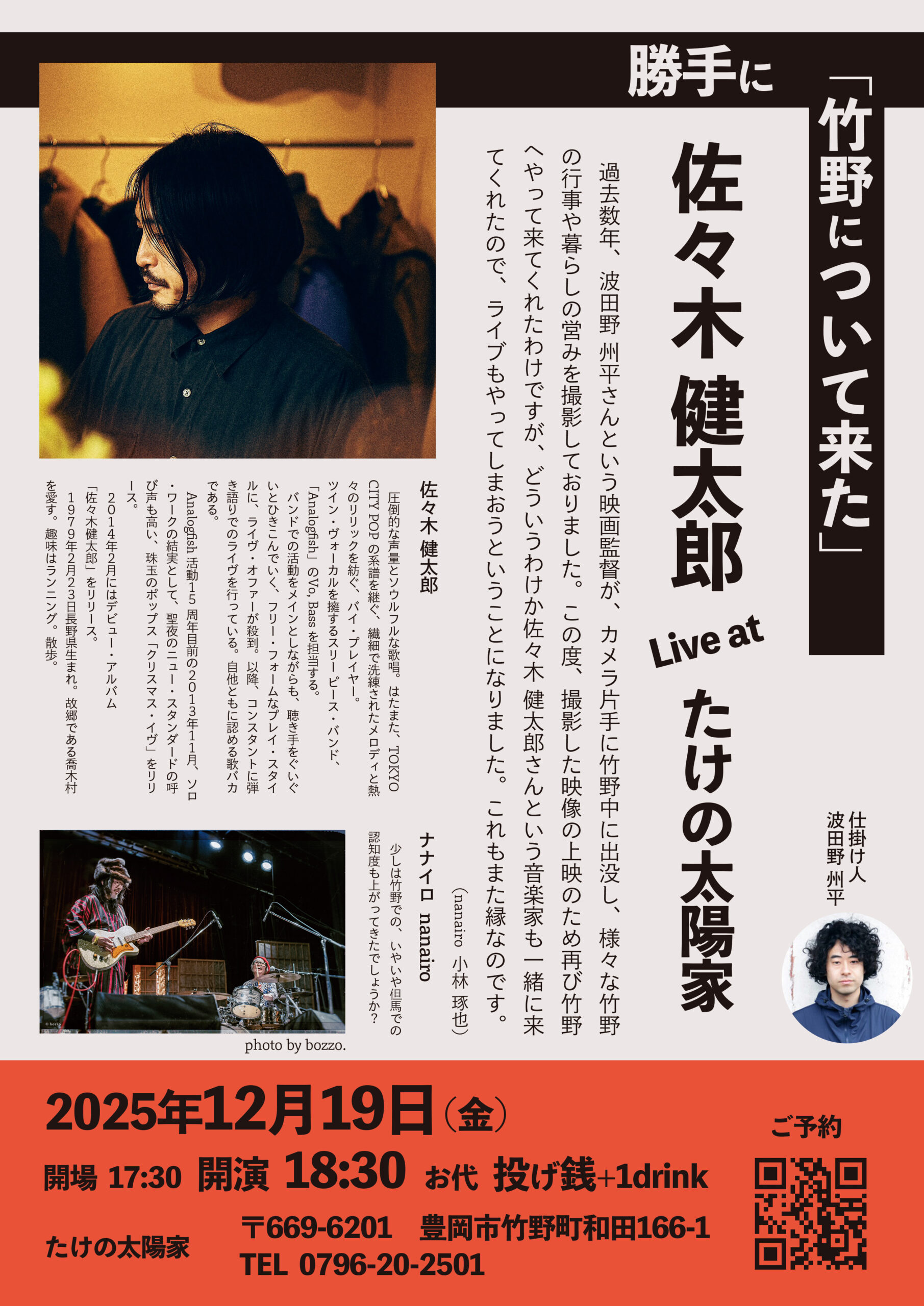 | 出演 | 佐々木健太郎(Analogfish) / nanairo 仕掛け人:波田野州平 |